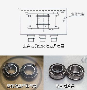 由超聲波發(fā)生器所發(fā)生的高頻振蕩訊號,通過換能器轉(zhuǎn)換成高頻機(jī)械振動(dòng)而傳播到介質(zhì)中,超聲波在清洗液中疏密相問地向前輻射,當(dāng)聲波的壓強(qiáng)達(dá)到一定的大氣壓時(shí),產(chǎn)生數(shù)以萬計(jì)的微小氣泡,這些氣泡在超聲波縱向傳播的負(fù)壓區(qū)形成、生長,而在正壓區(qū)迅速閉合。這種現(xiàn)象稱為超聲"空化效應(yīng)",產(chǎn)生氣泡時(shí)所需的壓力稱為超聲"空化閥值"。